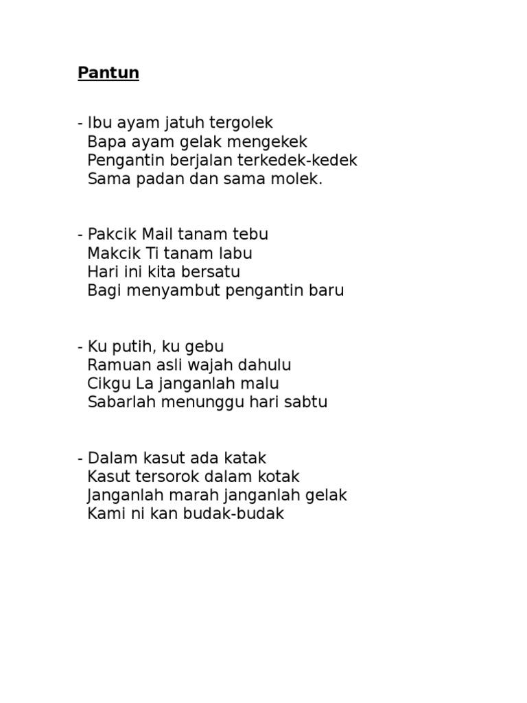 Kumpulan contoh pantun jenaka, pantun nasehat, teka teki, agama, pendidikan, cinta, romantis, persahabatan, perpisahan, ulang tahun, anak dll. Selamat menempuh hidup baru, moga bahagia sepanjang waktu. Waktu daftar hari terakhir, waktu terasa banyak terbuang. Dengan pantun orang dapat menyampaikan nasehat, pesan moral. Inilah pantun pantun pengantin dibuat untuk yang lagi bahagia disingkat p3 bukan karena menteri agama dari p3 sederhana semoga mengena dihimpun dari yang berserak ditata agar pesta tambah semarak nasehat singkat mungkin kurang memikat tapi insya allah bermanfaat amin.